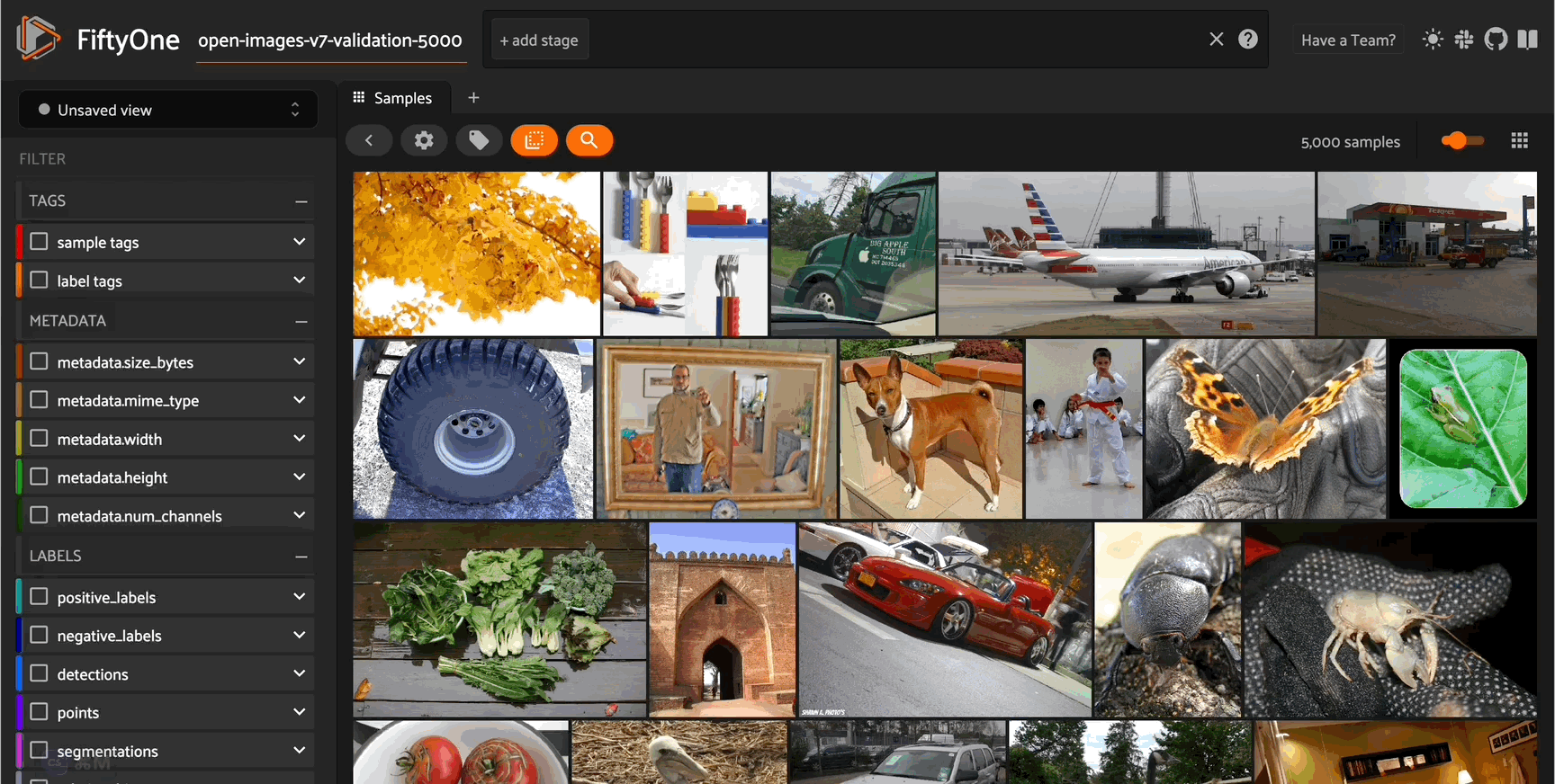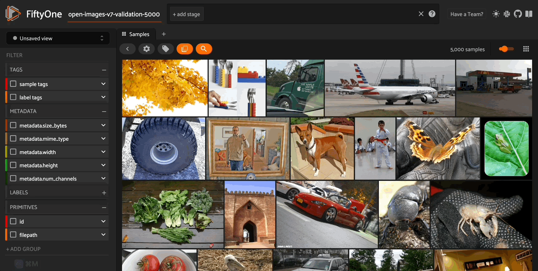Alternatively, we can perform the same operation in the FiftyOne App. When we tick the checkbox in the upper left corner of the first sample, the menu bar above it expands with new options, including a new image icon. Click on this icon and hit enter. It really is that easy!