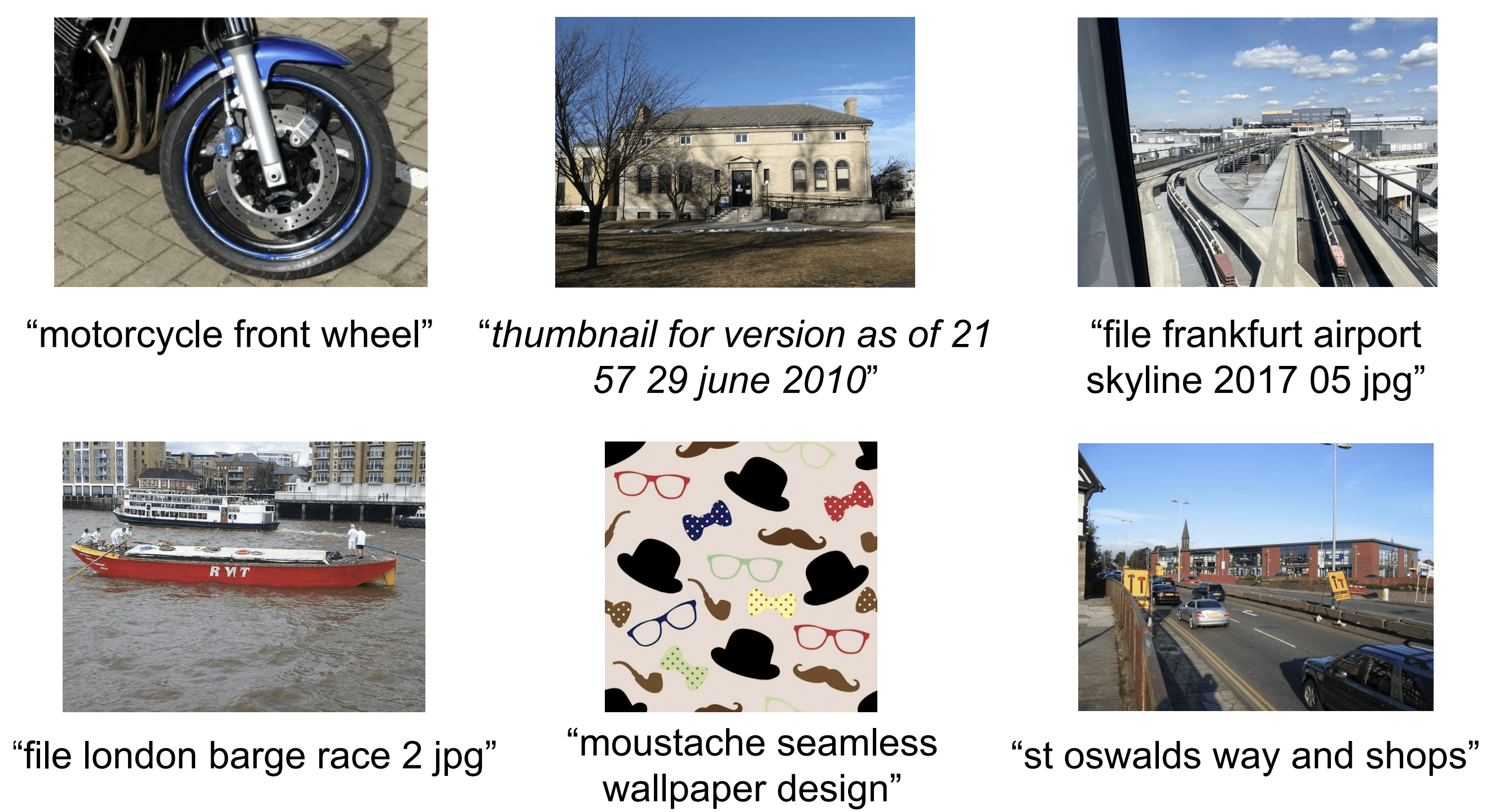 Exemplary pairs of images and alt-text from the ALIGN training dataset. Image originally from ALIGN paper.