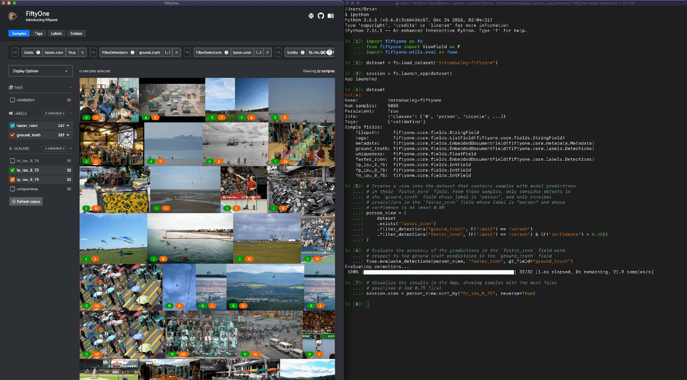FiftyOne is an open source machine learning toolset that enables data science teams to improve the performance of their computer vision models by helping them curate high quality datasets, evaluate models, find mistakes, visualize embeddings, and get to production faster.