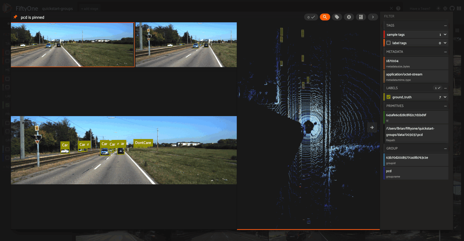 In previous FiftyOne versions, the only way to work with point cloud datasets in the App was to add point cloud samples as slices of grouped datasets that also contain other media modalities (image, video, etc). However, in FiftyOne 0.20 you can now create datasets that contain only point cloud samples and work with them natively in the App’s grid and modal views.