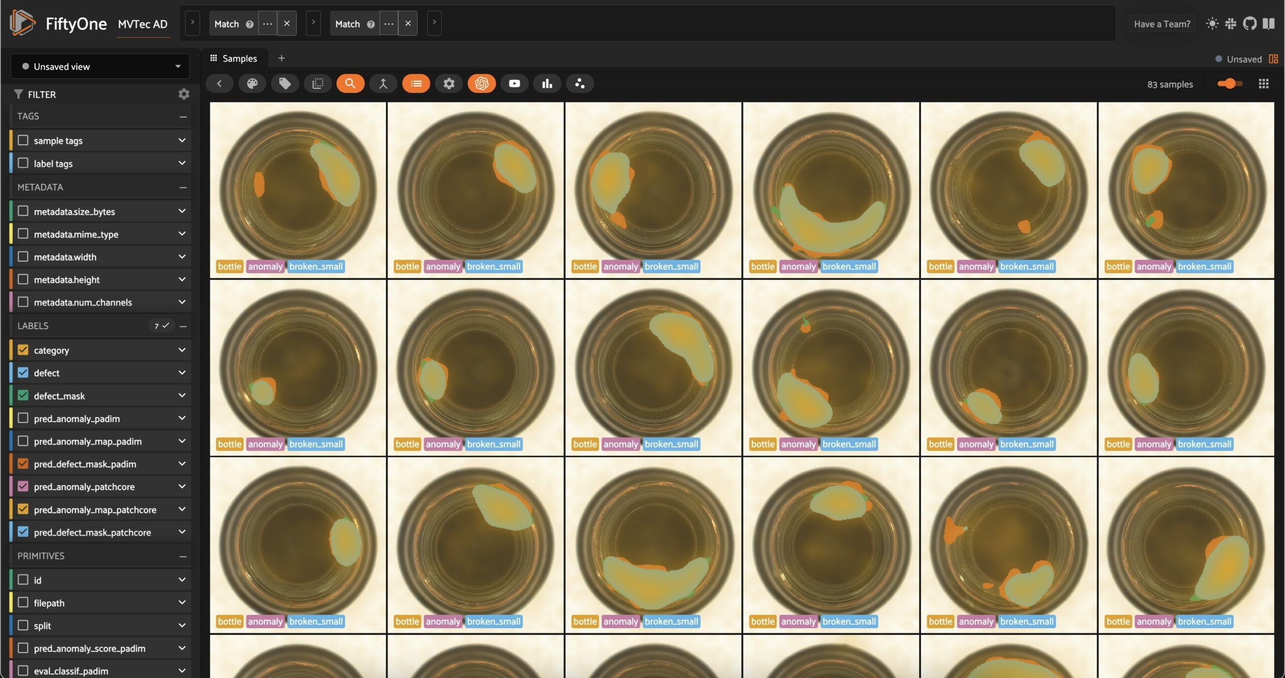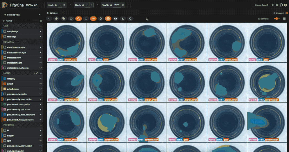 In this walkthrough, we learned how to perform anomaly detection on visual data using FiftyOne and Anomalib. While we trained two anomaly detection models, we only scratched the surface of what is possible with visual anomaly detection. If you want to improve performance, there are many other knobs you can turn: