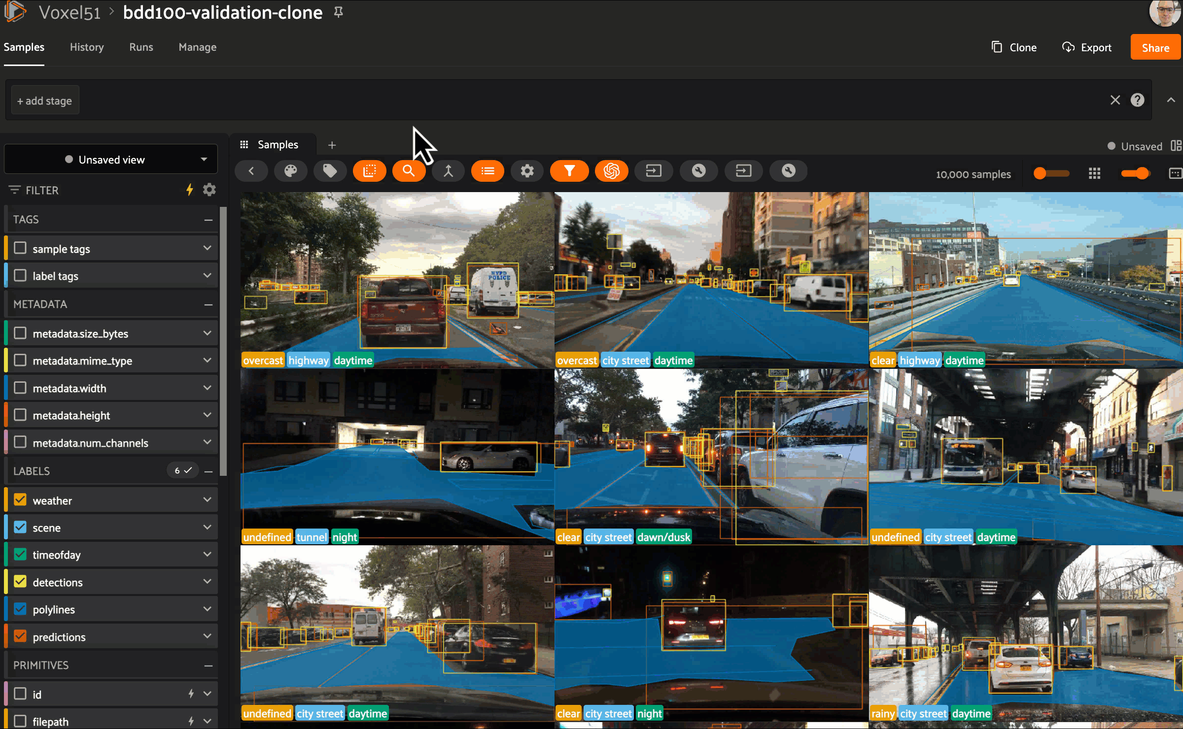 Finally, the interface lets add new tags to any samples within the threshold that might need attention or further review. Any team member with access to the dataset can then bring up those same samples with a single click.