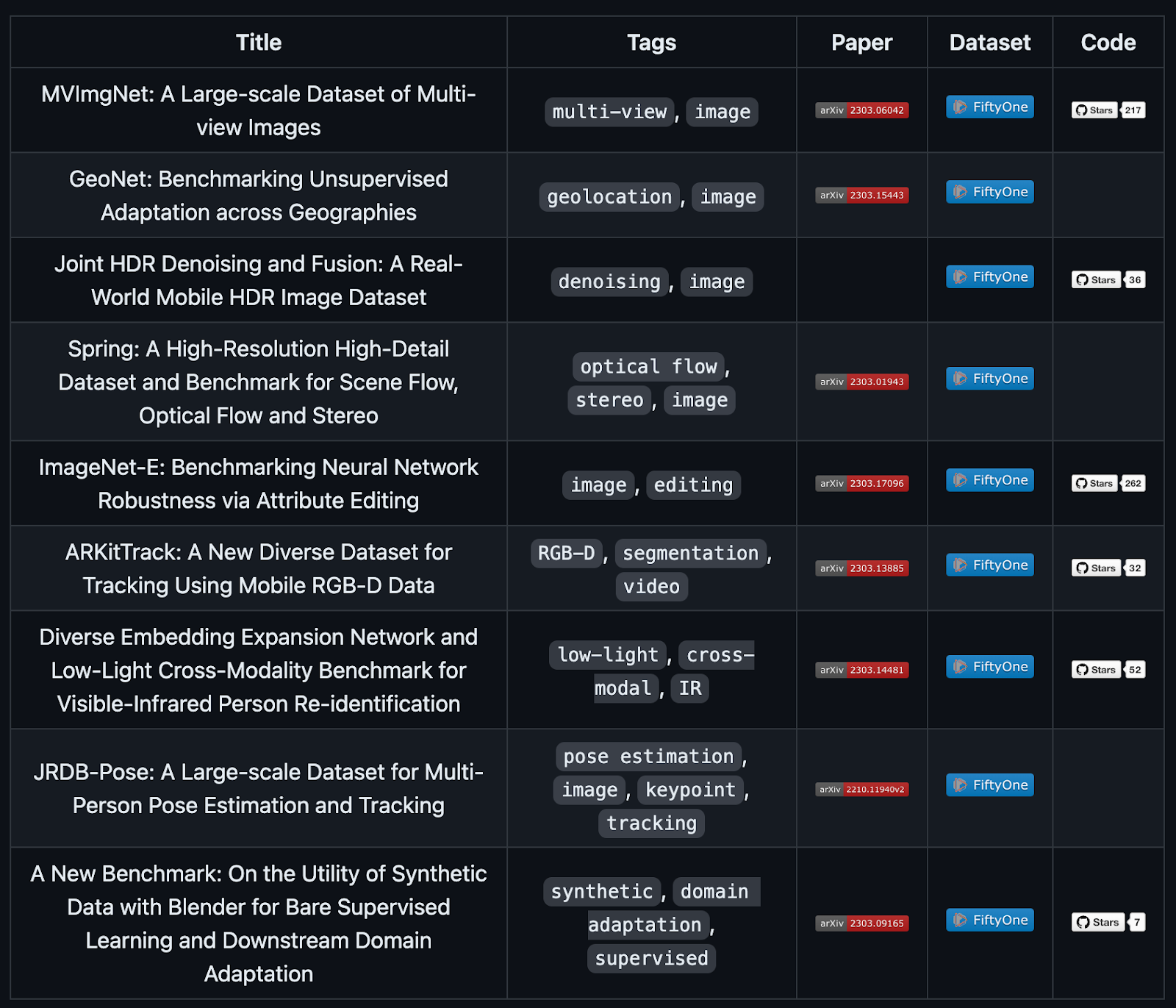 Back in June, inspired by paperswithcode.com my team and I created PapersWithData to emphasize the role that data plays in pushing the boundaries in machine learning and computer vision. To get this project off the ground, we worked together with the authors of a dozen datasets to convert their datasets into a common format and make them publicly browsable.