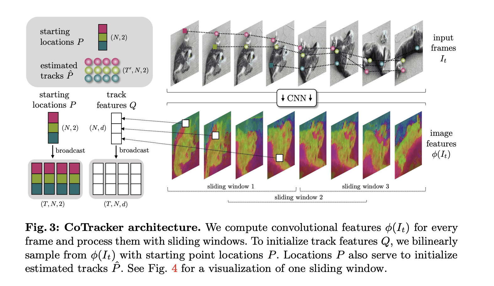 CoTracker is a transformer-based model that tracks many 2D points in extended video sequences. Unlike previous methods that typically track points independently, CoTracker introduces the concept of joint tracking. This means paying attention to dependencies between tracked points, leading to enhanced accuracy and robustness, mainly when dealing with occlusions or points moving out of the camera view.