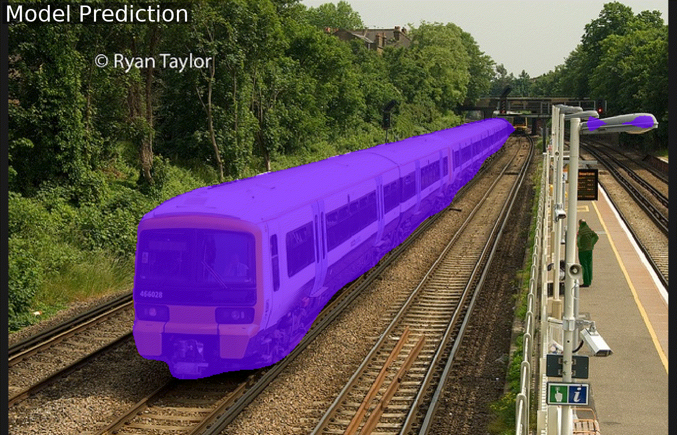 In an even more stunning example, watch how the model below precisely finds the edges for the train then drops it later on when it only focuses on the person. Remember that the heatmaps are only for the person class so it is incredible to see the model “ignore” the train towards the end after previously “looking” at it.