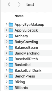 Both the test and train folders will contain video files broken up into 101 action categories.