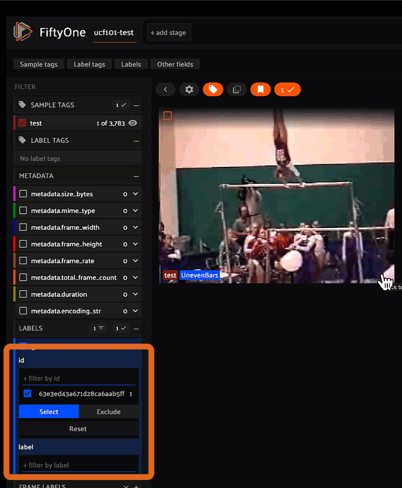 FiftyOne makes it very easy to filter the samples to find the ones that meet your specific criteria. For example we can filter by a specific id: