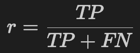 Definition of recall. TP stands for true positive, and FN stands for false negative.