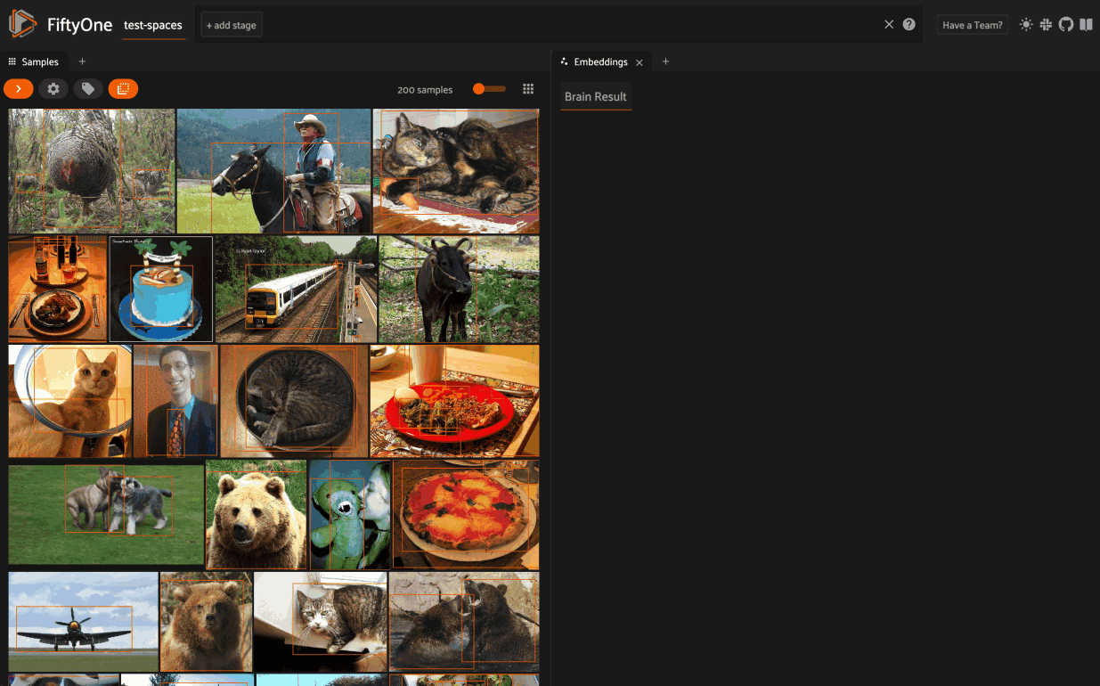In FiftyOne, all of the logic of combining embeddings, dimensionality reduction techniques, and plotting are wrapped in the easy to use interface of the FiftyOne Brain’s compute_visualization() method.