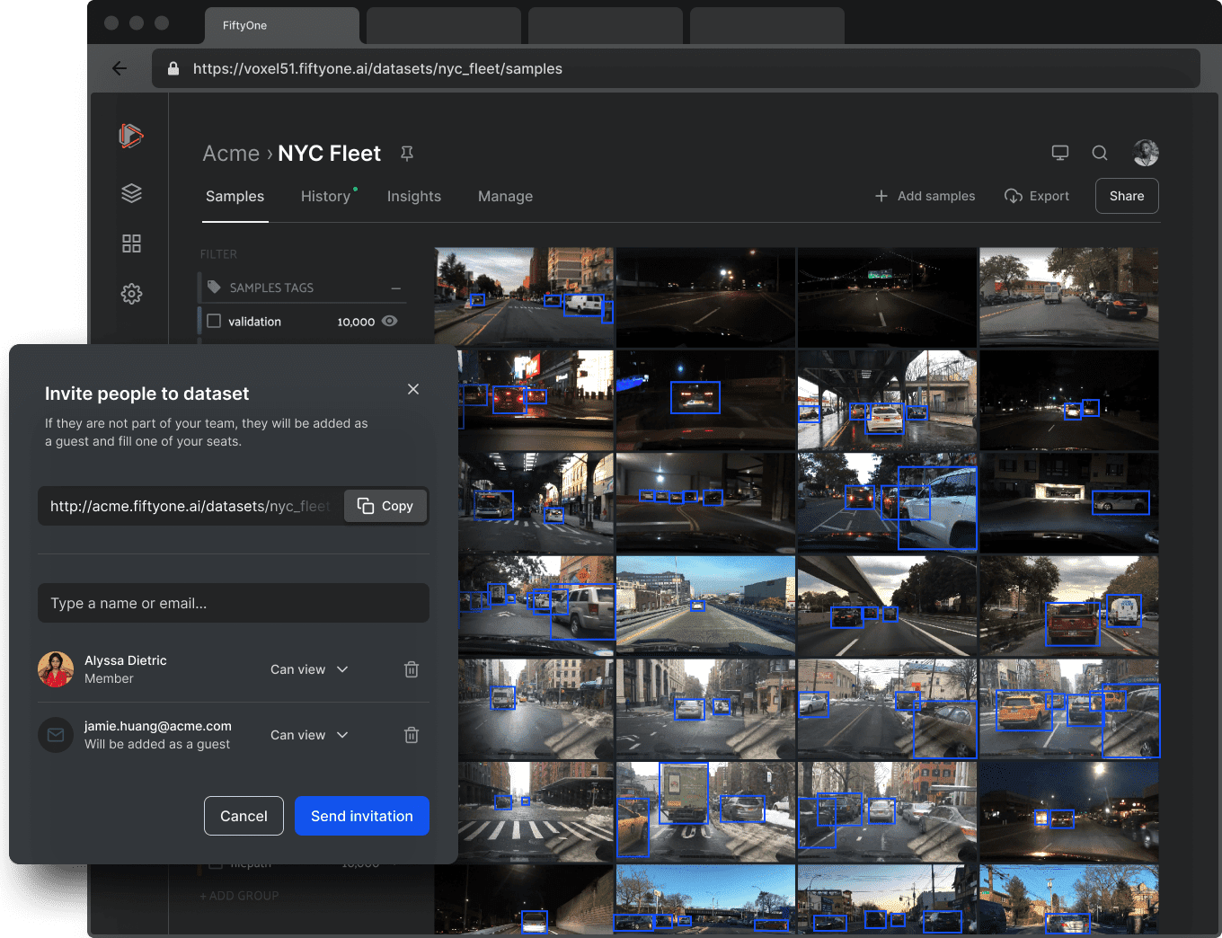Yes! FiftyOne Teams is specifically designed to make collaborating a simple and secure operation. With FiftyOne Teams, admins can assign one of four roles to a dataset: Admin, Member, Collaborator, or Guest.