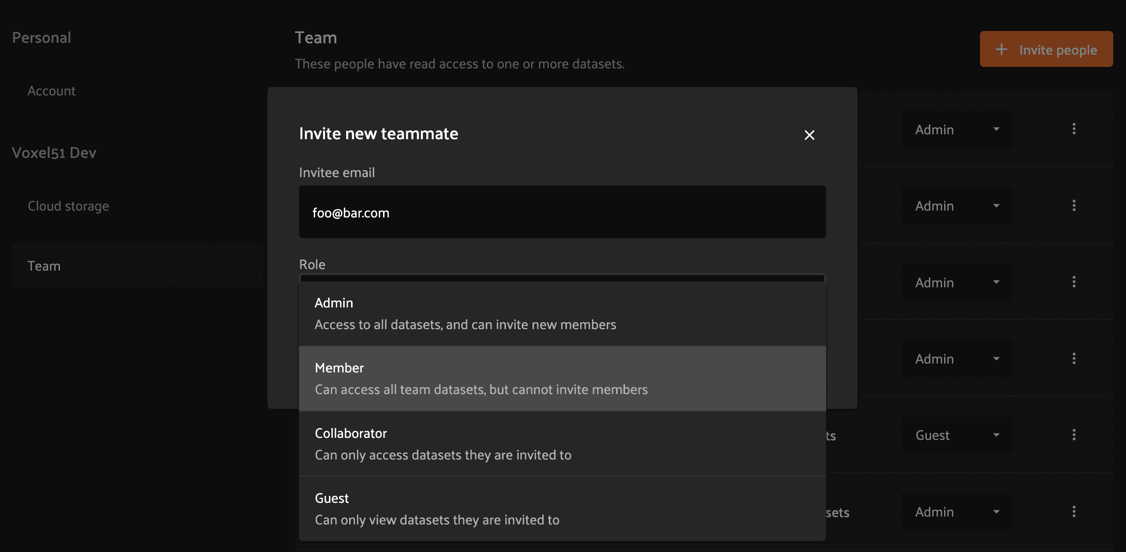 Collaborators cannot create new datasets, clone existing datasets, or view other users of the deployment. Collaborators may export datasets to which they’ve been granted access.