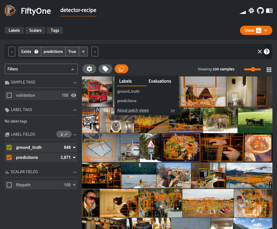 For background, it can be beneficial to view every object as an individual sample, especially when there are multiple overlapping detections in an image. In FiftyOne this is called a “patches view” and can be created through Python or directly in the App.