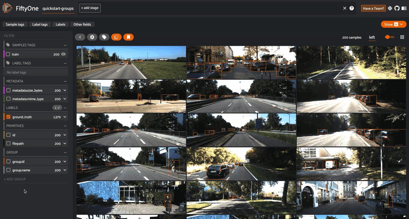 With the latest FiftyOne 0.17.0 release, there is now support for the creation of grouped datasets, which contain multiple slices of samples of possibly different modalities (image, video, or point cloud) that are organized into groups. Grouped datasets can be used to represent multiview scenes, where data for multiple perspectives of the same scene can be stored, visualized, and queried in ways that respect the relationships between the slices of data.