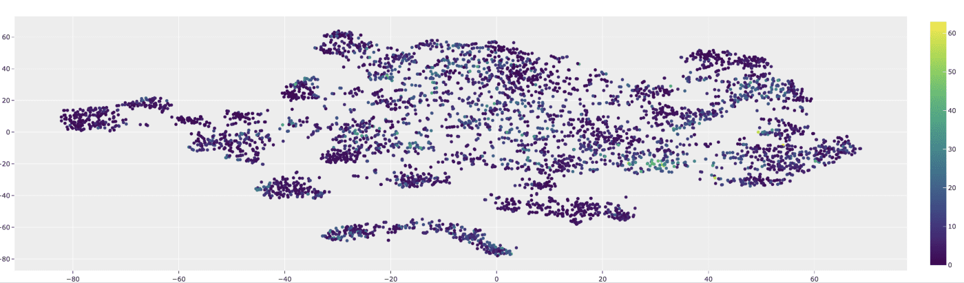 Even in this very basic visualization, we can see that the images with tons of objects tend to cluster together. There’s much more that can be gleaned from visualizations like this, but that is not the focus of this article.