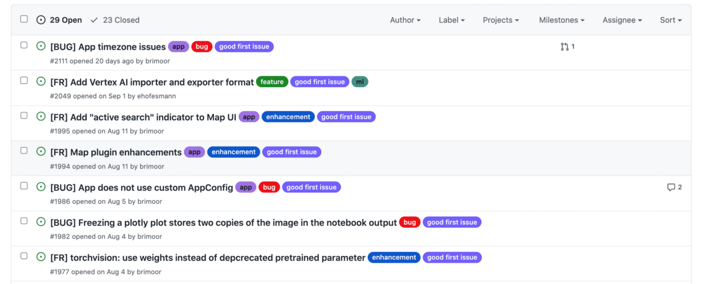 We first released the open source FiftyOne project a little over two years ago, and since then we’ve added a ton of new features in partnership with the community, which has now grown to tens of thousands of engineers and their forward-looking companies, 1900+ GitHub stars, 1000+ Slack members, and 1000+ Meetup members. All-year-round we welcome community contributions of all kinds — whether you submit GitHub issues to see new features you’d like added or make contributions to the project itself, everyone is welcome.