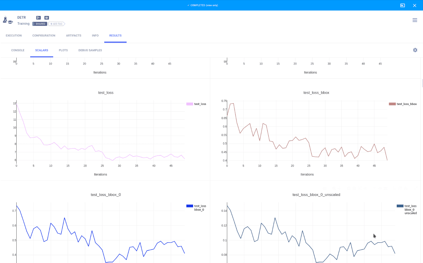 The original DETR implementation already logs the scalars we want to a .txt file, so all we have to do, is capture these parameters and add them to the ClearML task using the logger.report_scalar function.