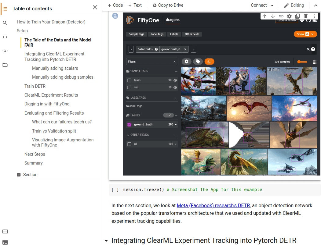 In this post, we will walk through the process of developing a computer vision model and dataset in a repeatable and effective way utilizing ClearML and FiftyOne. Specifically, we will be training the object detection model DETR on a dataset of dragon images, though the general workflow presented is extensible to nearly any computer vision and machine learning task.