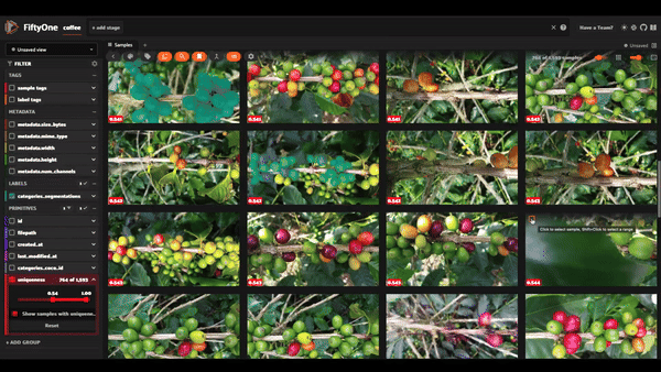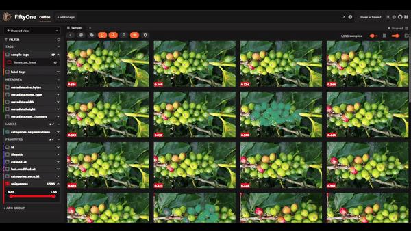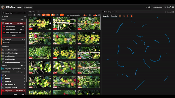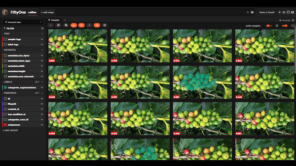 Example Use Case: While working on coffee fruit detection, I noticed specific images were captured under poor focus or leaves in front of the lens, causing significant bias. FiftyOne enabled me to isolate and review these cases for potential elimination and curate the dataset properly.
