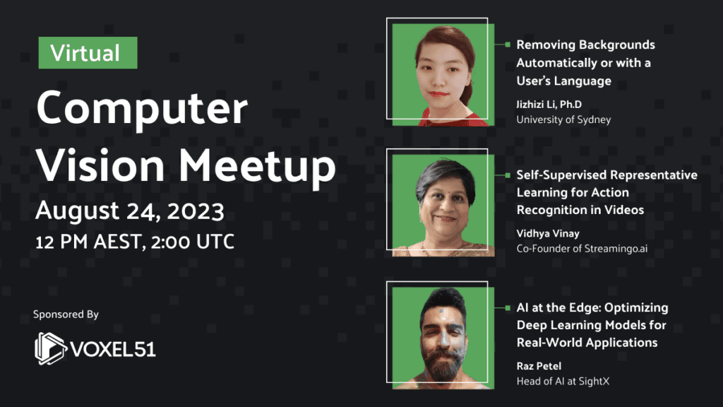 We just wrapped up the August 10, 2023 Computer Vision Meetup, and if you missed it or want to revisit it, here’s a recap! In this blog post you’ll find the playback recordings, highlights from the presentations and Q&A, as well as the upcoming Meetup schedule so that you can join us at a future event.