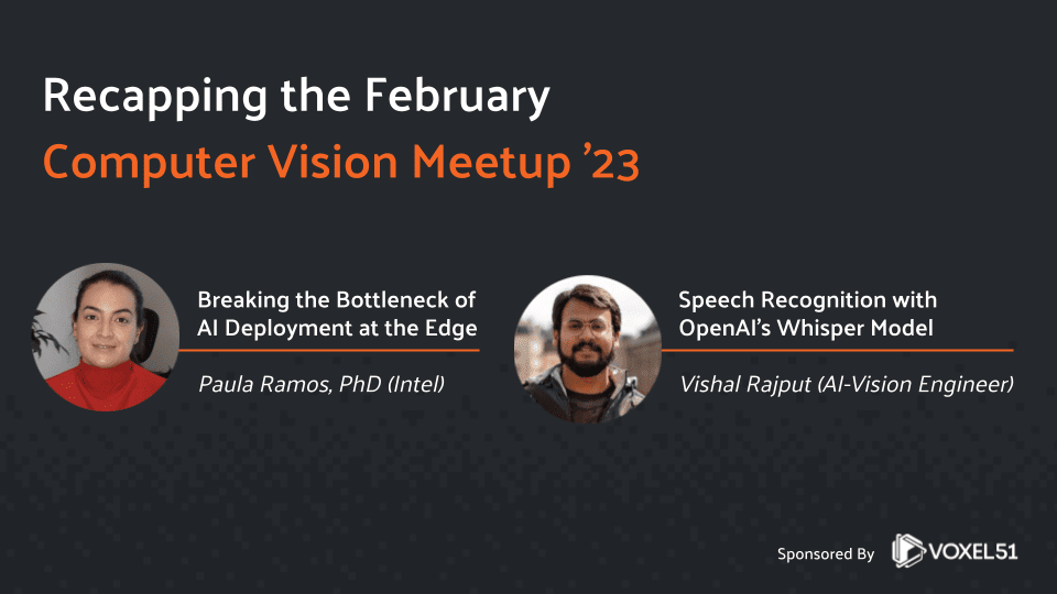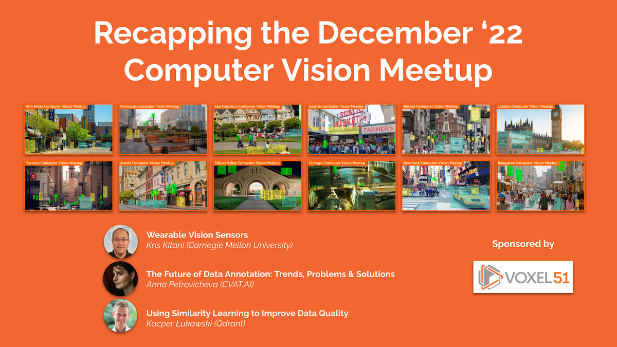 Computer Vision Meetup. In this blog post you’ll find the payback recordings, highlights from the presentations and Q&A, as well as the upcoming Meetup schedule so that you can join us at a future event. Hope to see you soon!