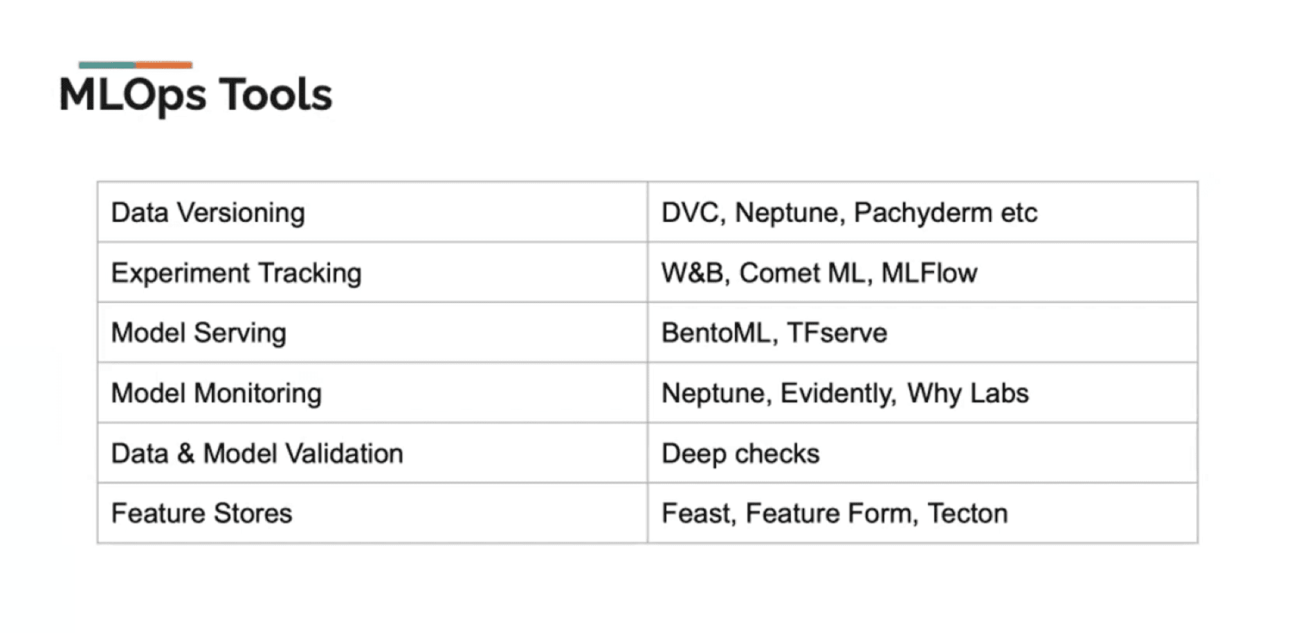 But after you have all these disparate open source tools running, how do you manage them? And what if you switch a tool? You don’t want to have to rewrite your code. So how can we create reproducible, maintainable, and modular data science code? Enter ZenML. Sumanth loves this tool and demonstrates it in the presentation (from ~25:26 - 35:01). (He also notes that alternatives include Kedro and Flyte in case you want to check them out). ZenML has a notion of stacks, which represent a set of configurations for your ML Ops tools and infrastructure. For examples, you can do all this with ZenML stacks: