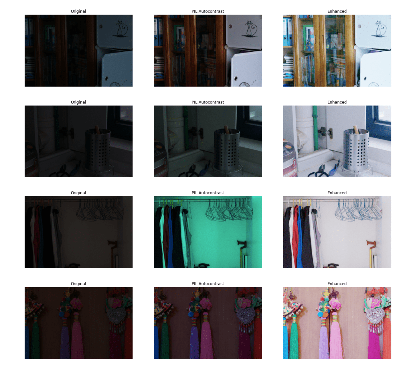 The unsupervised model is cool…but what would be the benefit over just applying the contrast and pixel distribution ops to the images “manually”? In the presentation, we briefly touched on the pitfalls of traditional auto contrast algorithms, which are summarized here. In addition to that, they do not perform as well as Zero-DCE. When I created this tutorial for Zero-DCE over on keras.io, François Chollet, the creator of Keras, on a PR thread performed an interesting benchmark. You can see the original low light image compared to the result by a traditional auto contrast algorithm, and then the result that was spewed out by Zero-DCE. You can clearly see that the auto contrast models do not actually perform very well.