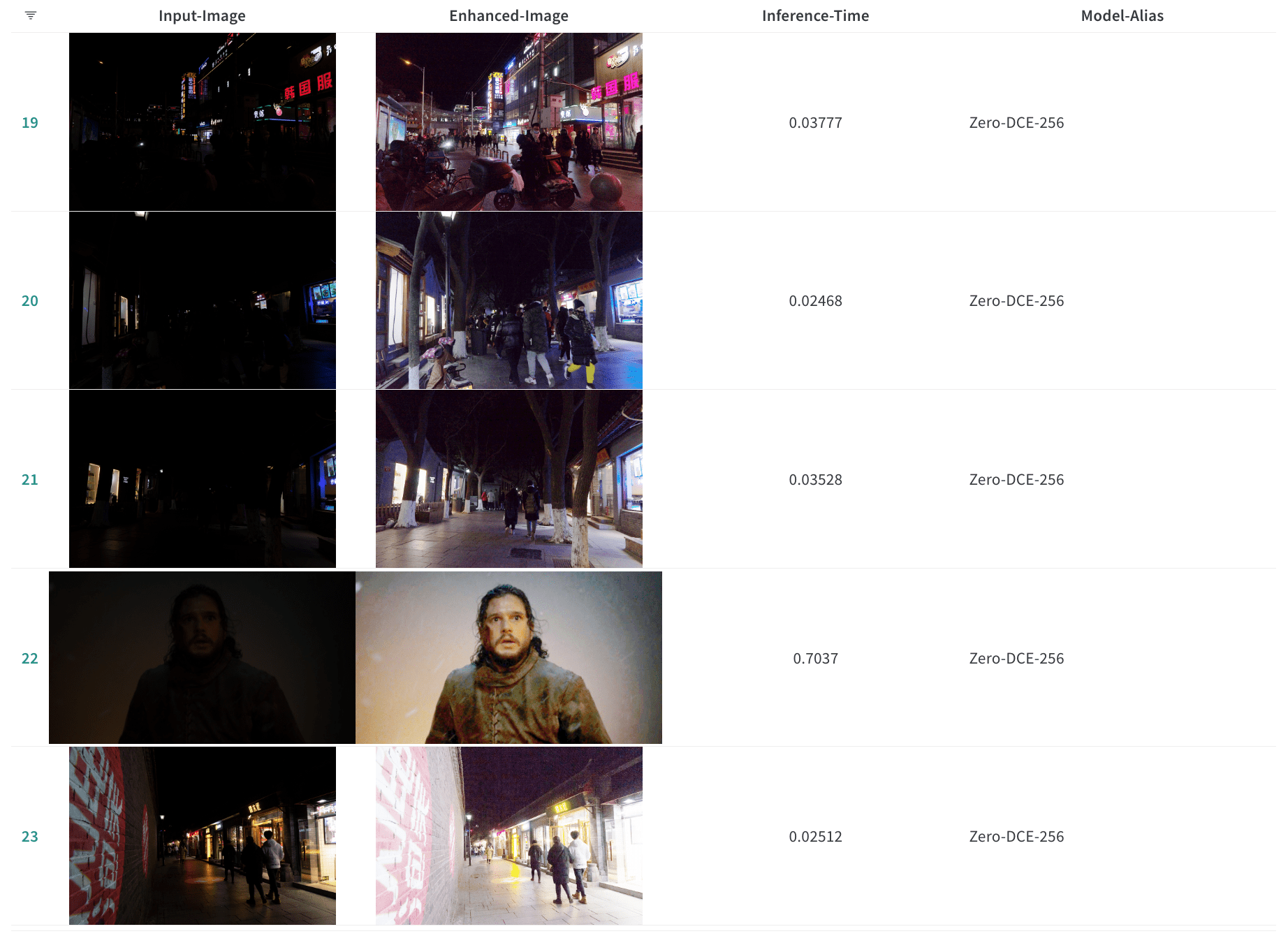 In terms of qualitative analysis, Zero-DCE has already shown that it's capable of holding its own against the larger models like NAFNet or MIRNet-v2. Also the images that we show in the “usage section” of the online tutorial are completely out of distribution images from different datasets (some are from the Dark Face dataset, which is actually for object detection in incredibly low light conditions; and I tossed in some other ones as well).