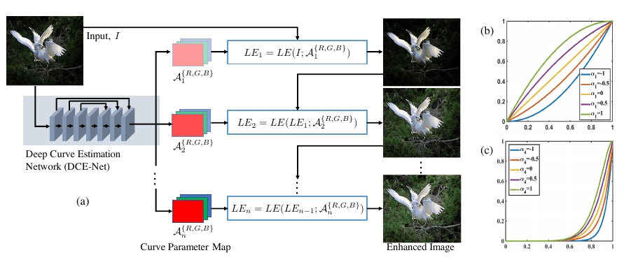 Learn more about NAFNet, including how to train it using restorers and wandb from ~24:29 - 31:33 in the video replay. For the code, you can refer to this Colab notebook. Soumik explains the last of the three models that he will feature in this presentation. “Zero-Reference Deep Curve Estimation or Zero-DCE formulates low-light image enhancement as the task of estimating an image-specific tonal curve) with a deep neural network. Instead of performing image-to-image mapping, in the case of Zero-DCE, the problem is reformulated as an image-specific curve estimation problem. In particular, the proposed method takes a low-light image as input and produces high-order curves as its output. These curves are then used for pixel-wise adjustment on the dynamic range of the input to obtain an enhanced image. A unique advantage of this approach is that it is zero-reference, i.e., it does not require any paired or even unpaired data in the training process as in existing CNN-based (such as MIRNet) and GAN-based methods (such as EnlightenGAN).”[1]