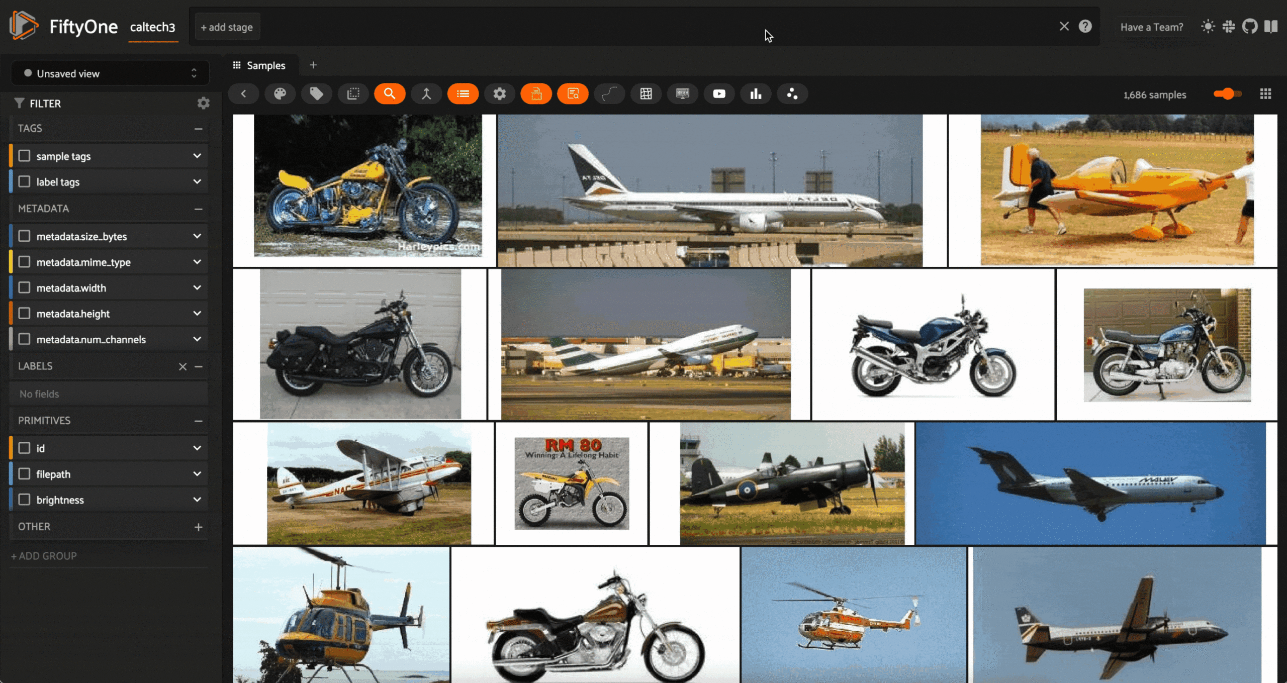 If you don’t have any candidate feature fields, a good starting point is to use model embeddings.You can compute embeddings in Python by loading a model from the FiftyOne Model Zoo and running compute_embeddings(). For this walkthrough, I’ll compute embeddings using one more semantic model, CLIP, and one model trained more to represent data on the level of pixels and patches, MobileNet: