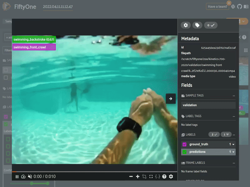 The integration of the Kinetics dataset into FiftyOne makes it easier than ever to be able to download exactly the subset of Kinetics that you want or even the dataset in its entirety. Additionally, FiftyOne allows for in-depth evaluation and analysis of video models leading to better datasets and higher performing models.