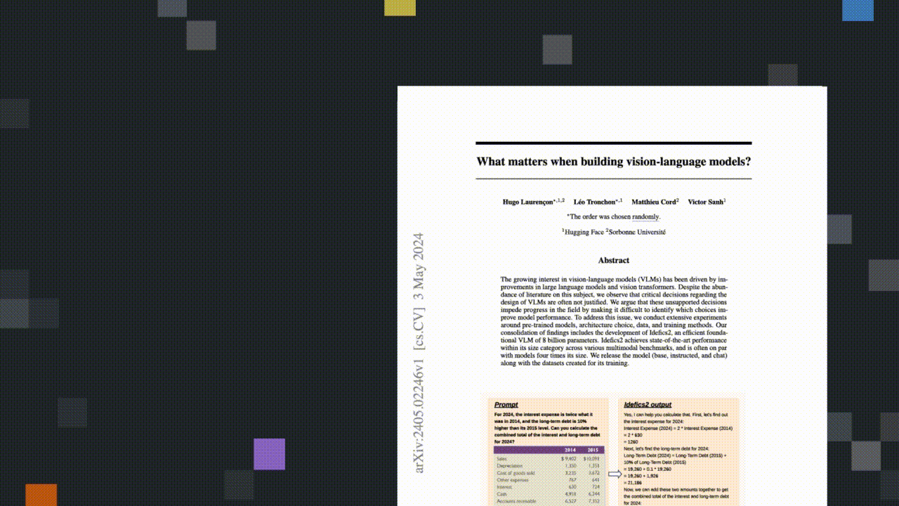 Developing Vision Language Models (VLMs) is an arena filled with challenges and potential. Recently, we had the pleasure of discussing these topics with Hugo Laurençon about his research on the creation of VLMs, highlighted in his paper "What Matters When Building Vision Language Models", which will be presented at NeurIPS 2024. Our dialogue drew attention to the complexities in crafting and refining these models.