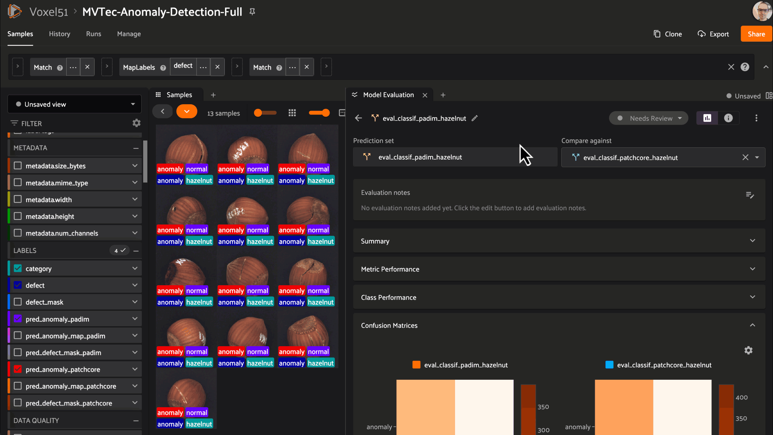 TL;DR: This post introduces a a unified interface to compute, visualize, and compare model metrics. Identify error cases, filter samples, and compare multiple model runs side by side all within FiftyOne Enterprise.