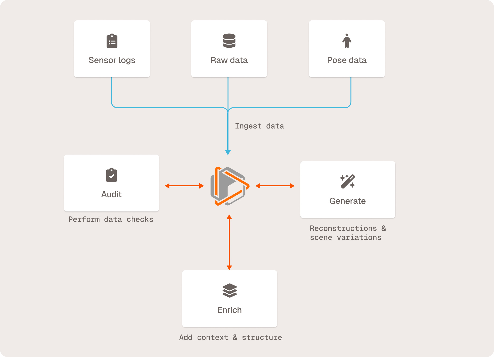 The challenge isn't just volume. In fact, it’s that all these sensors must work in perfect harmony for downstream high-fidelity simulations of the physical world. For example, if an autonomous vehicle’s camera captures a pedestrian at timestamp 10:23:45.127, the LiDAR should capture the same pedestrian at the exact same moment. If they're off by even a few milliseconds, or if the spatial calibration between them drifts by a few degrees, downstream 3D reconstruction places that pedestrian in the wrong location. This means that not only are the neural reconstructions and simulations inaccurate, but simulations will train models incorrectly. These models deployed in the real world can misjudge distances and object motion, resulting in unsafe or incorrect decisions.