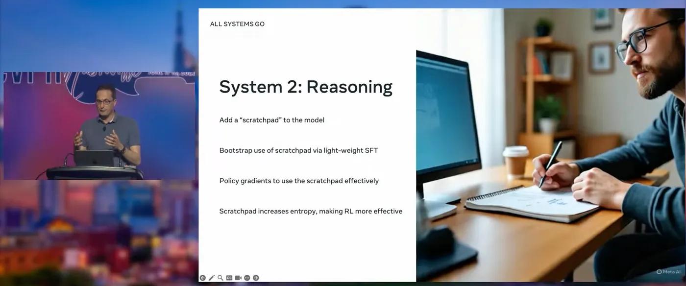 Current models like Llama 4 have gotten remarkably good at generating immediate responses based on their pre-trained knowledge. The massive gains we’ve seen from scaling up parameters and training data primarily benefit these System 1 capabilities, which essentially rely on pattern recognition and memorization. However, we’re witnessing diminishing returns from this approach, suggesting we’re approaching the ceiling of what pure pre-training can accomplish.