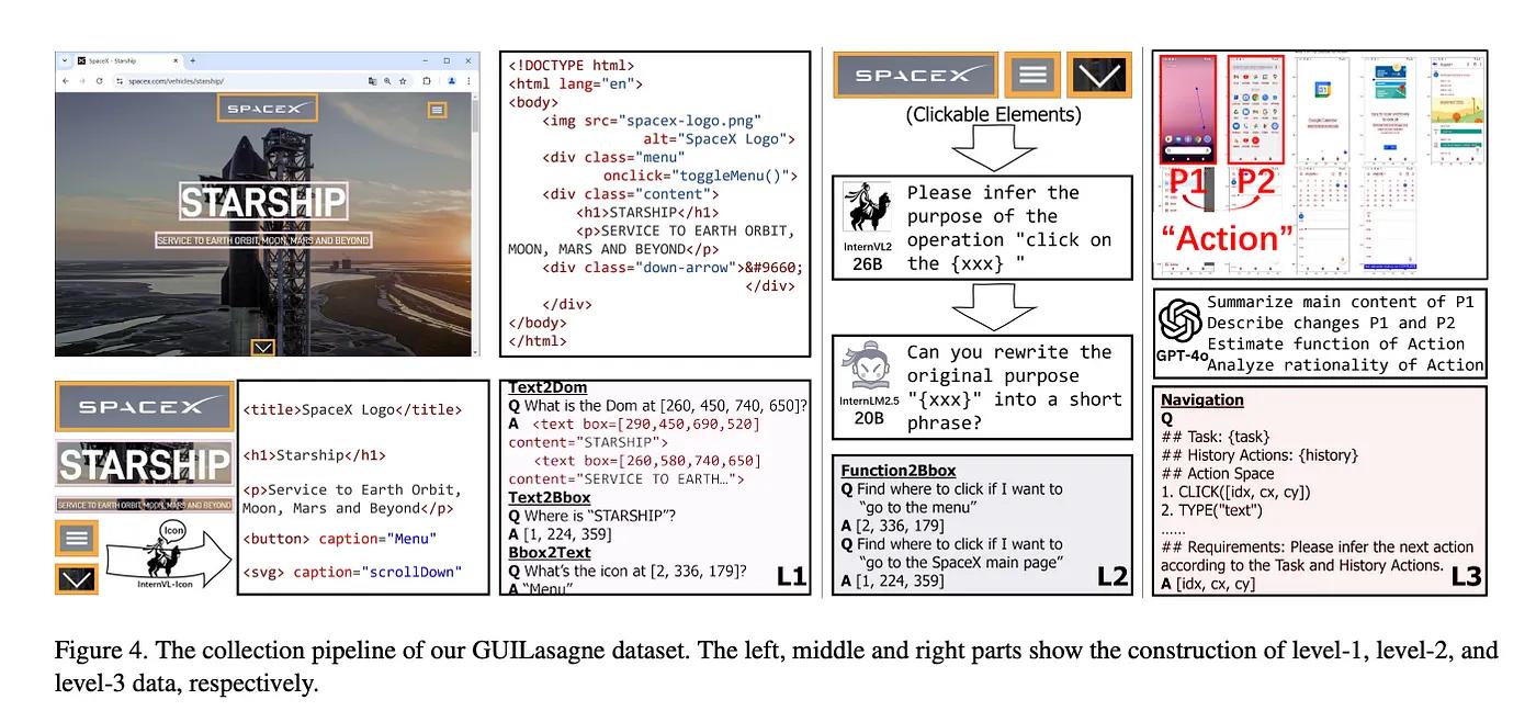 The GUI-Lasagne dataset is at the heart of SpiritSight’s capabilities, a meticulously structured collection comprising 5.73 million samples gathered using scalable, cost-effective methods from real-world sources.