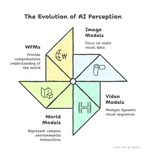 If video is the learning signal for motion, world foundation models (WFMs) are the bet that AI can learn how the world changes. WFMs aim to perceive, predict, and simulate environments in motion, learning from generative experience alongside curated datasets.