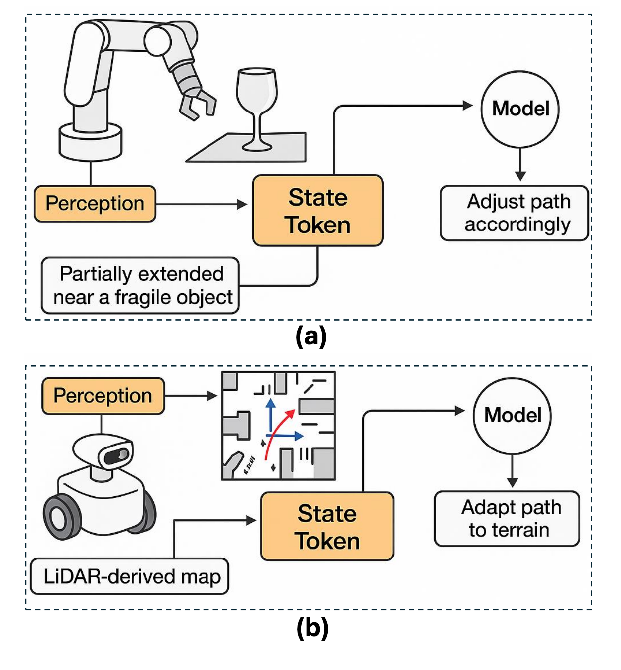 Robots need to have internal state awareness (e.g., joint positions, velocities, torques, end-effector poses, gripper status). These low-dimensional structured vectors are essential for precise manipulation. Vision tells you where objects are in the world, but not where your own arm is relative to your body. Fusing proprioception with high-dimensional visual inputs creates unique multimodal fusion challenges absent in pure vision-language models.