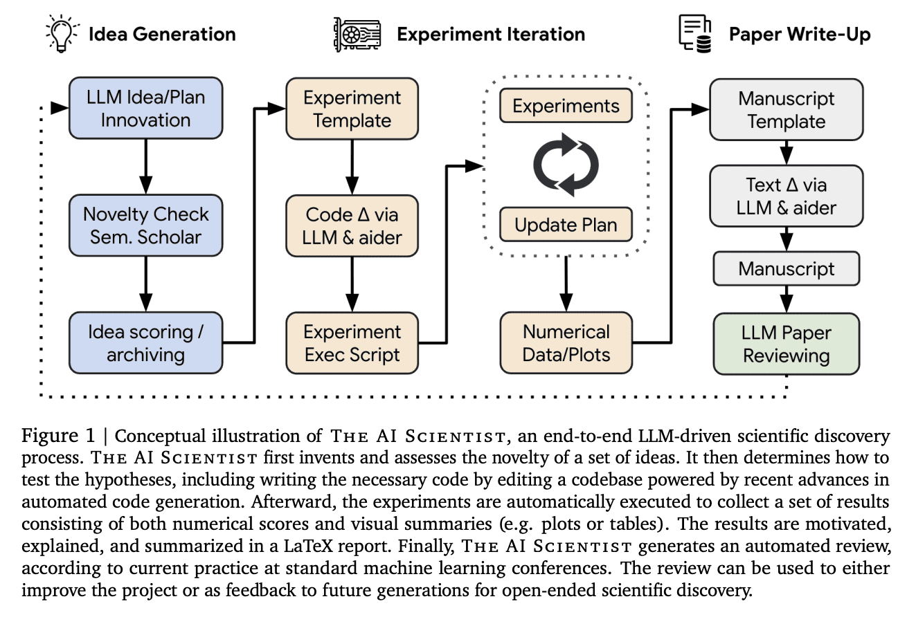 Whenever an exciting paper comes out, the first thing I do is see if hu-po has done a paper review or has one scheduled. Heβs been my go-to for paper reviews over the last several months; heβs hands-down the best in the game. I count this as a good listen even though itβs a YouTube video since you can do as I did and listen to the video while doing chores around the house and still understand what itβs all about. So, what is the "The AI Scientist"? Itβs a system for fully automated scientific discovery using foundation models like large language models (LLMs). This system automates the entire research process, from generating ideas to writing papers and conducting peer reviews. The system has successfully produced papers in various machine learning subfields, including diffusion modeling, language modeling, and grasping. While the current version has limitations, such as occasional errors in result interpretation and visual issues, it shows promise in democratizing research and accelerating scientific progress. Interesting things The AI Scientist can do:
