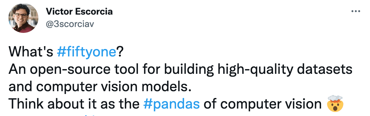 It has a very powerful API that’s designed to help you organize your data and query it. A recent blog post came out comparing the way that you can filter your data in FiftyOne to the way that you can with tabular data in pandas. Brian shares: “So one analogy to think of is that FiftyOne can be the pandas for computer vision.”