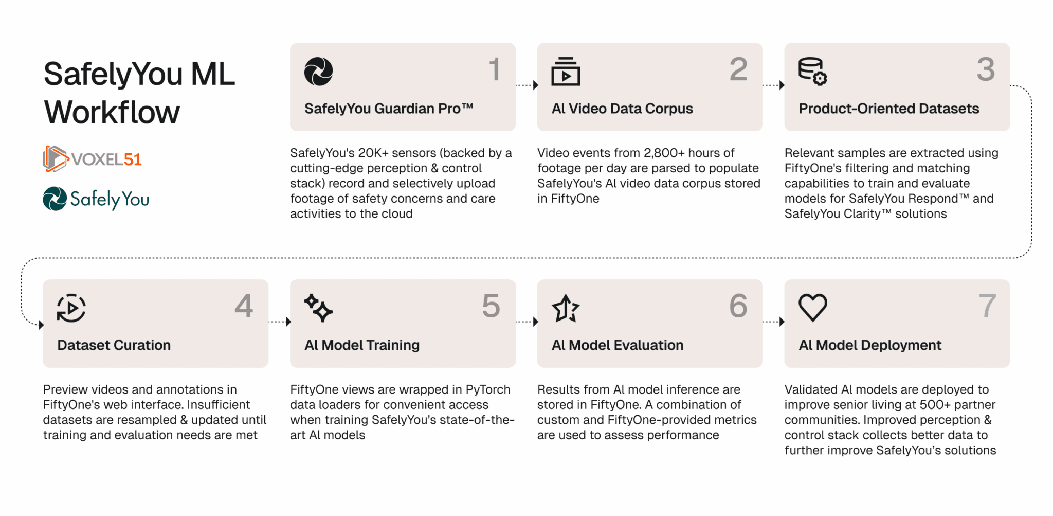 SafelyYou found FiftyOne as the perfect fit to address their data management and scalability challenges for their Respond and Clarity solutions. With FiftyOne as the primary resource for ML work, the team was able to: