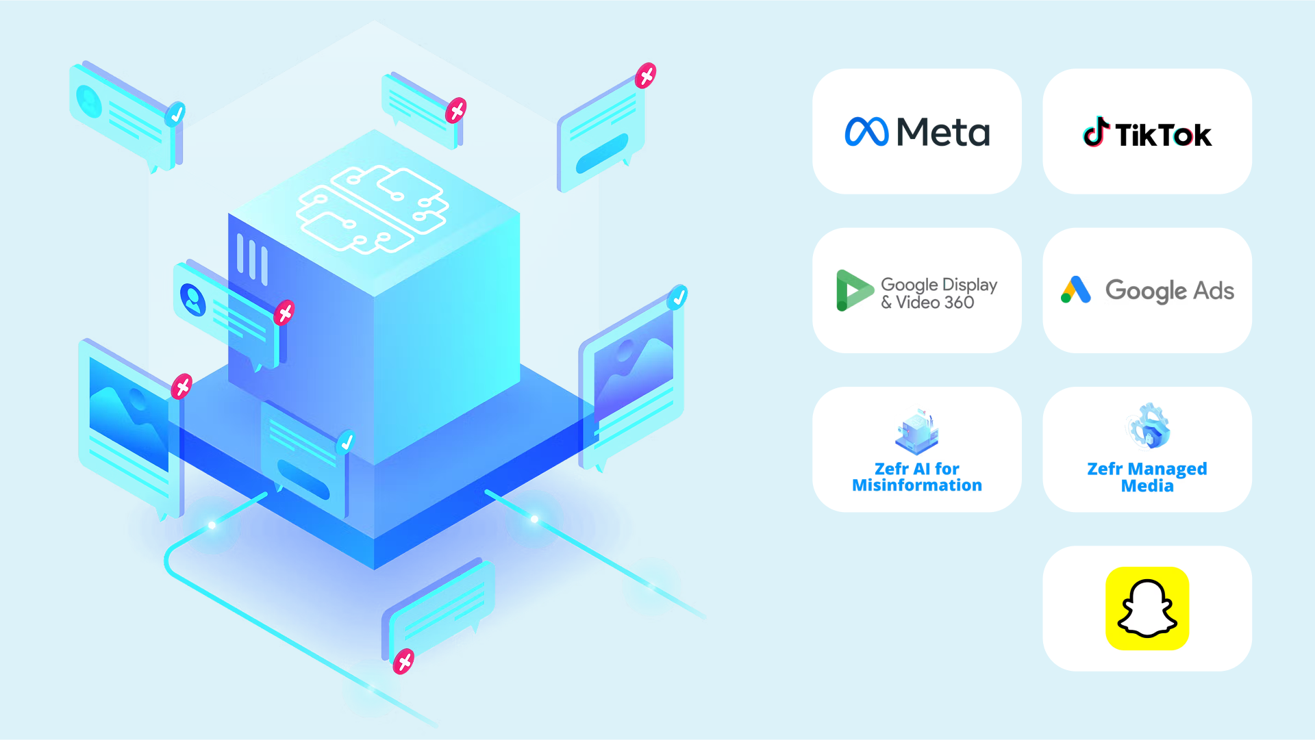 Zefr is a leading technology provider for contextual advertising and brand safety for wall-gardened platforms. Their platform ensures that ads appear alongside safe, suitable, and contextually relevant content across major social media channels. As a trusted partner to Meta, YouTube, TikTok, and Snapchat, Zefr's AI system manages advertising risk in real time by processing hundreds of millions of social media impressions and content types per day. With Zefr, brands maintain a 99%+ safety rating on social media platforms.