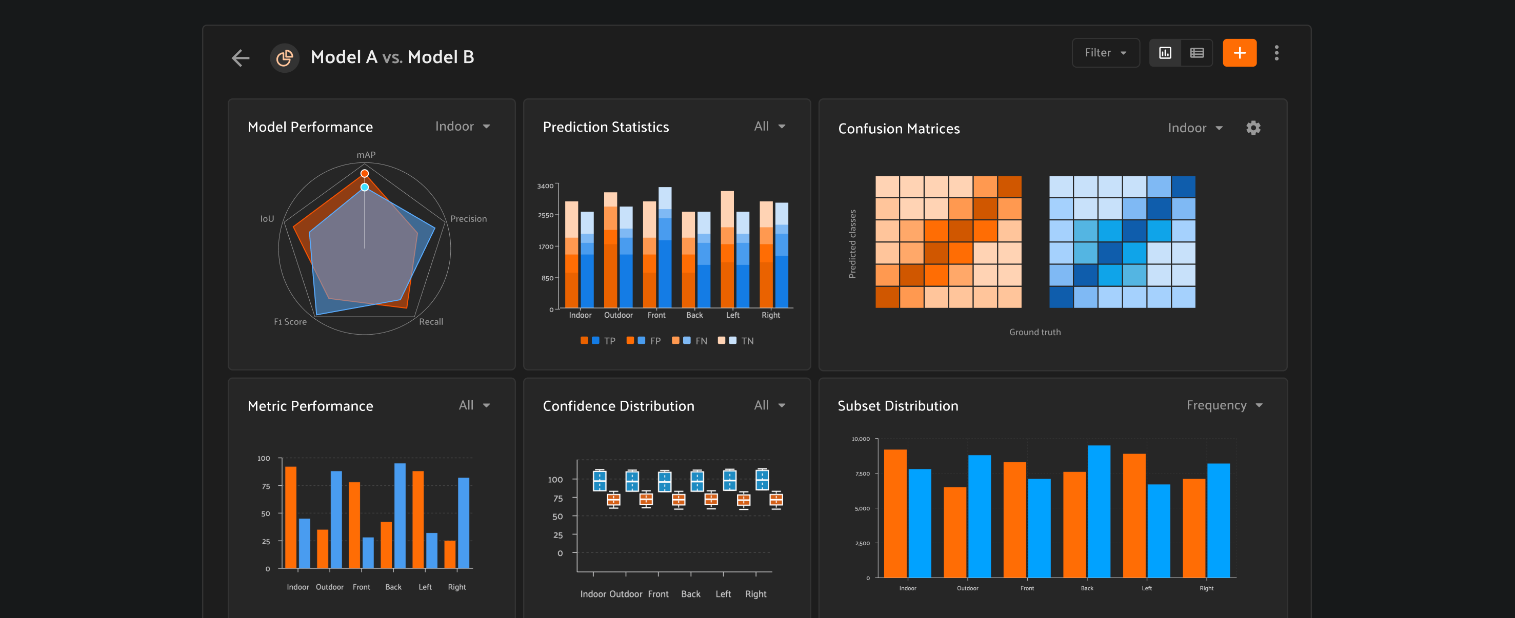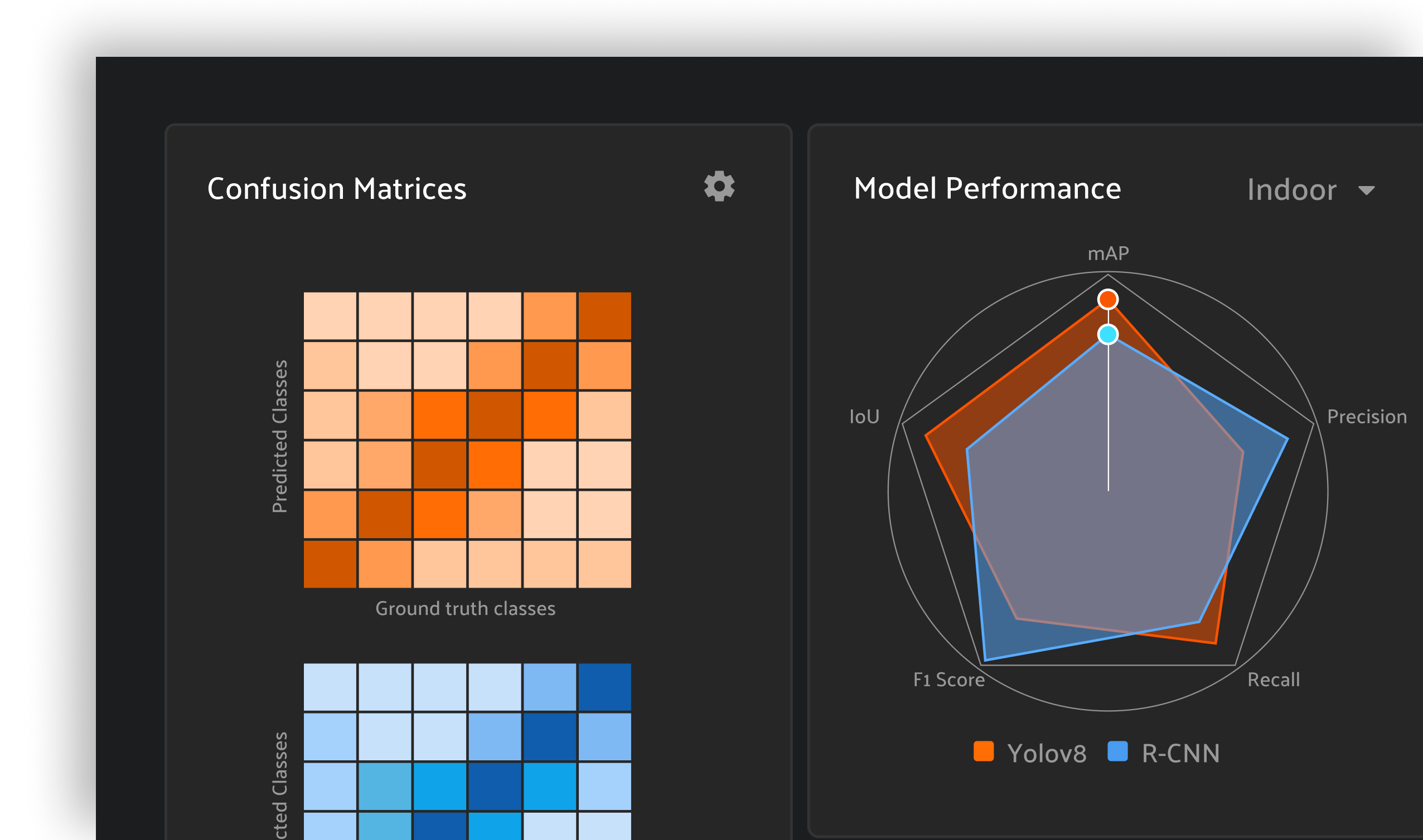 Compare model predictions against ground truth labels directly on your images. Quickly identify where your model excels — and exactly where it needs improvement.