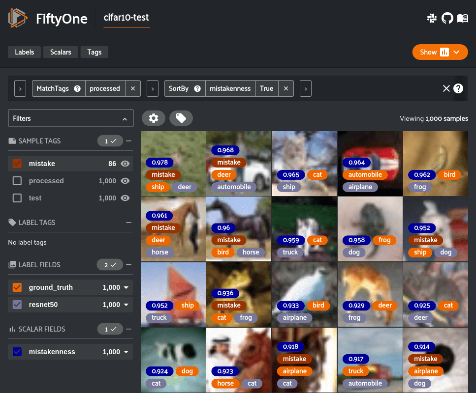 Modern computer vision libraries and tools help generate these metrics. For example, the open-source tool FiftyOne provides built-in methods to evaluate classification models, outputting standard metrics like classification reports, confusion matrices, and precision-recall curves, and even recording per-sample statistics that you can explore interactively.