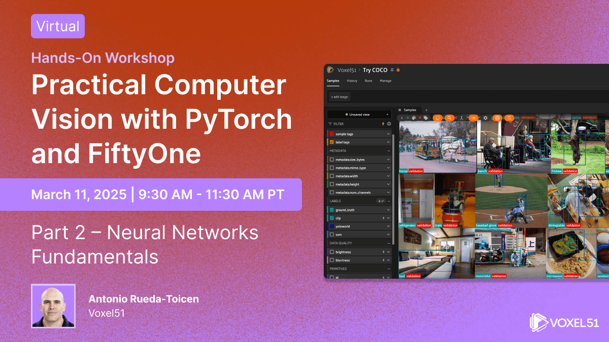 Join us for the free 90-minute, hands-on workshop to learn how to get started with open source FiftyOne.
